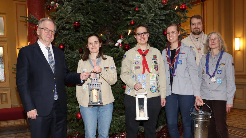 Ministerpräsident Haseloff hat das Friedenslicht aus Bethlehem in der Staatskanzlei empfangen. Das Friedenslicht wird jedes Jahr in der Geburtsgrotte Jesu in Bethlehem entzündet und seit 1994 von Pfadfinderinnen und Pfadfindern als Zeichen der Hoffnung auf Frieden an Weihnachten deutschlandweit an viele Kirchengemeinden und zahlreiche öffentliche Einrichtungen verteilt.